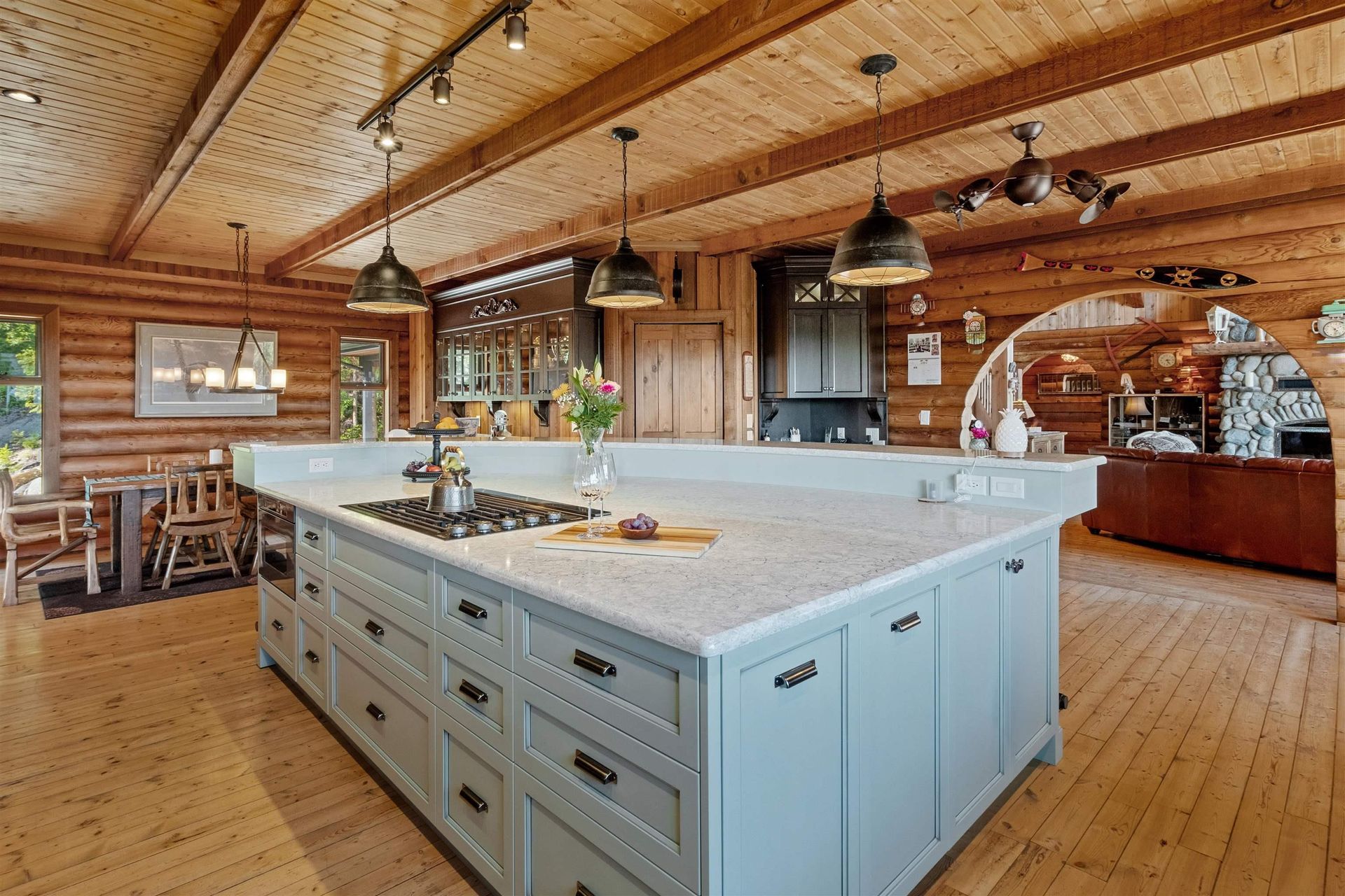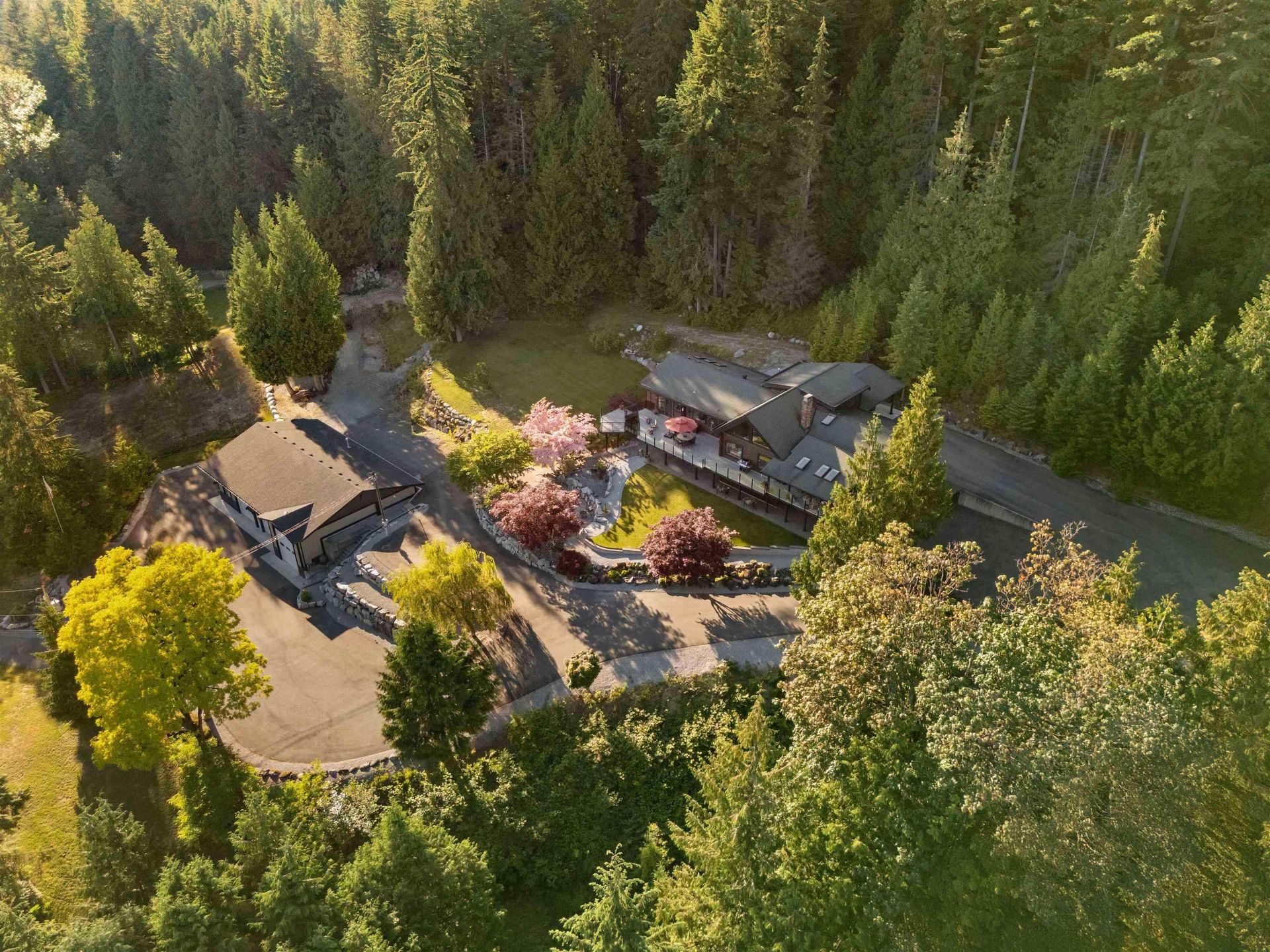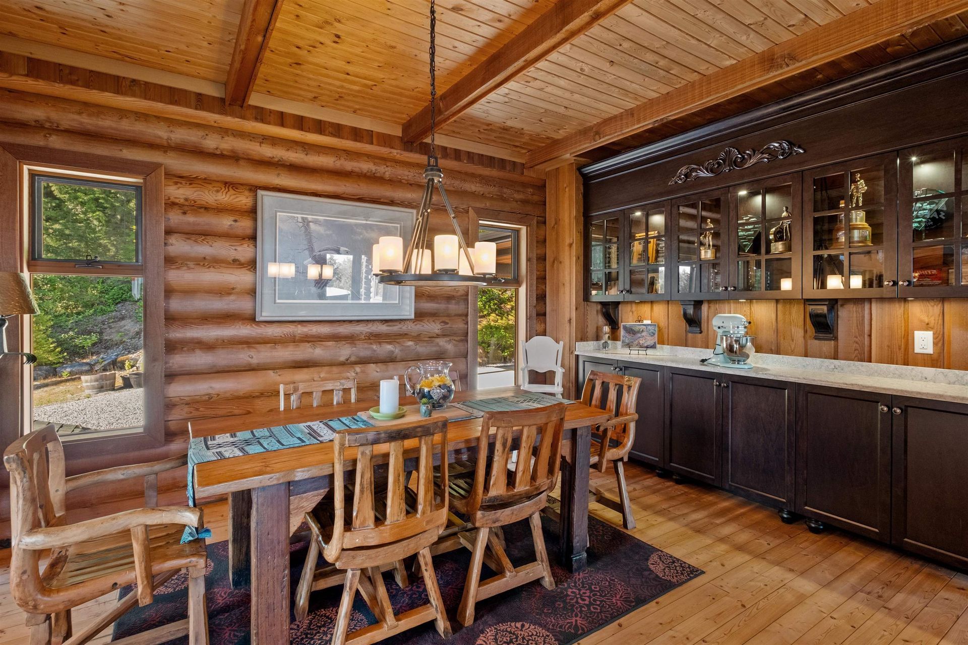 Welcome to your private paradise! This spectacular custom 4,188 sqft log home features 180 degree panoramic views while nestled on a sprawling 5.01 acres. Incredible wood work through out the home. Tons of natural sunlight into games room, kitchen and large living room with vaulted ceilings. Upgraded kitchen with pantry is an entertainers dream with Dacor appliances, an expansive island and a dedicated eating area. Primary bedroom is on the main floor with a walk-in closet and a spacious ensuite bathroom. In the basement, the laundry and 2 bedrooms with a full bathroom await as well as a spacious living room. The property also includes a 2,780 sqft detached heated garage with 3 bay doors with space for RV parking inside w/200amp service. Amazing outdoor lighting throughout the property.